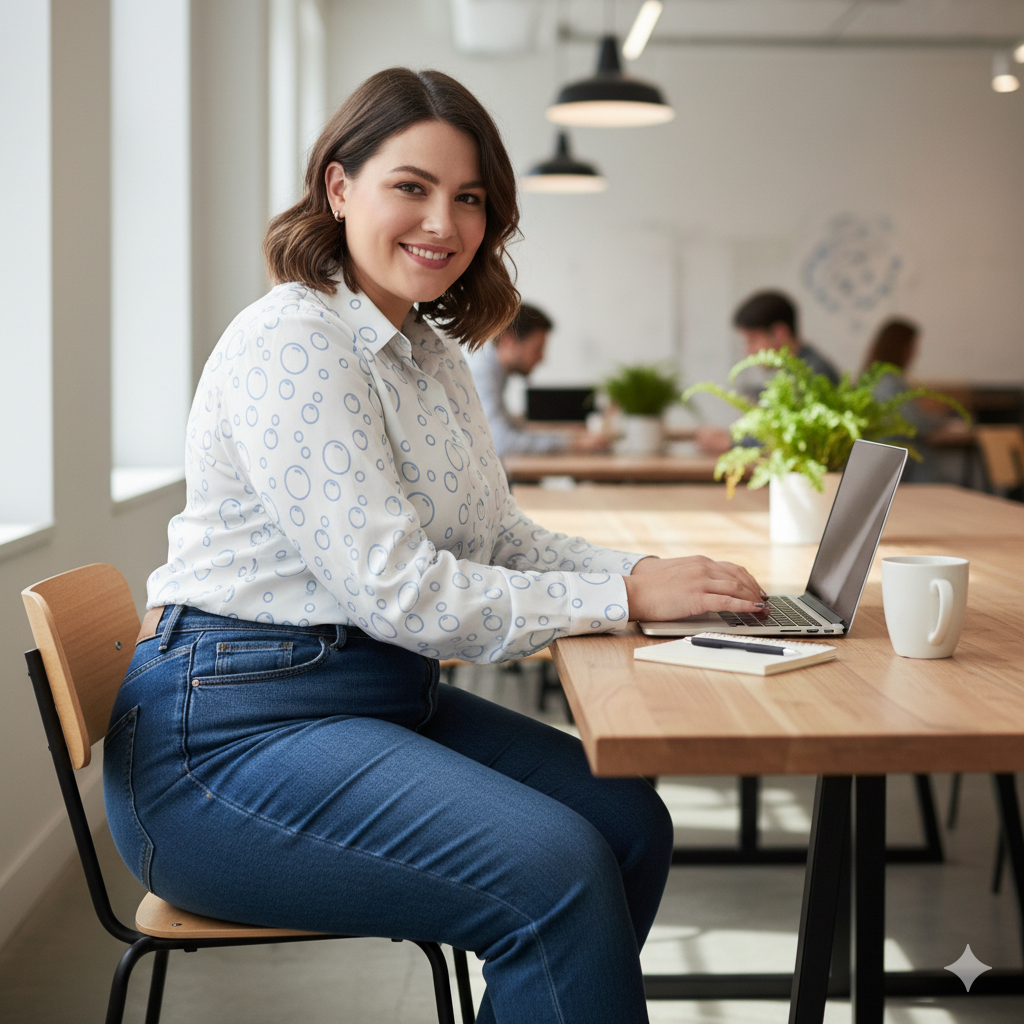 β¨ Fresh, light, and fluid: the shirt that brings a summery touch to your everyday looks.π A bright white background punctuated with light blue bubbles for a clean, sparkling, and modern look. The premium polyester is soft and breathable, and the asymmetrical hem visually elongates the silhouette. The all-over sublimation print guarantees crisp colors wash after wash. Wear it tucked into white jeans for a Riviera vibe, open over a tank top on vacation, or with tailored pants for a βcasual chicβ office. Inclusive by nature, available up to 8XL: fashion adapts to you, not the other way around.