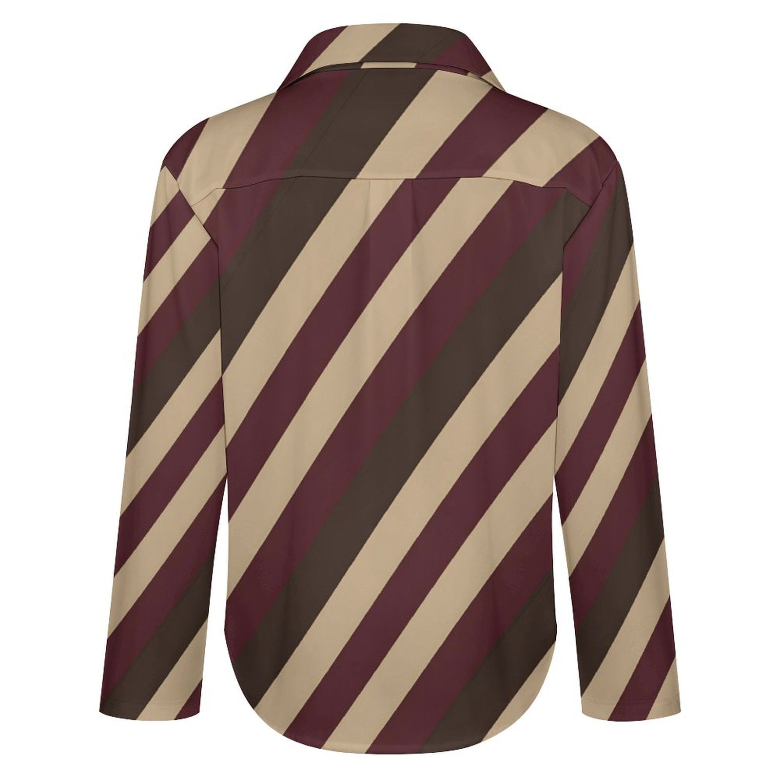 β¨ Graphic and fluid: the striped shirt that warms up your fall-winter looks with effortless elegance. π Deep diagonal stripes (burgundy, taupe, brown) for a chic and elongating look, a soft-touch bottom and an asymmetrical hem that falls perfectly. Premium polyester is lightweight, breathable and stays beautiful all day long. The all-over sublimation print locks in crisp colors wash after wash. Wear it tucked into black jeans for a chic casual style, open over a top for a cool city vibe, or paired with tailored trousers for a business meeting. Inclusive by nature, available up to 8XL β fashion that adapts to you.