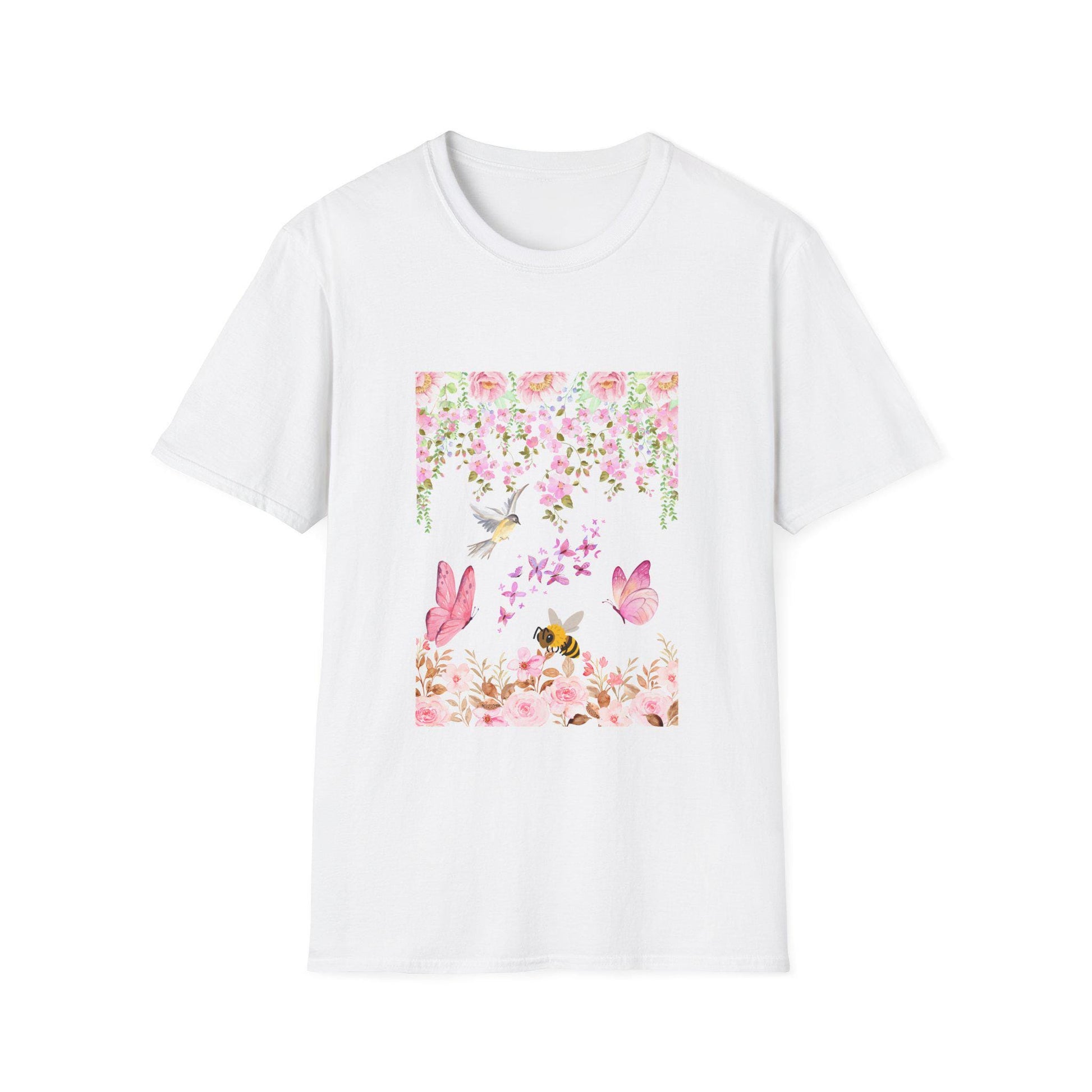 Camiseta unisex Floral Paradise: algodón suave, estampado de mariposas y flores, tallas XS a 5XL
