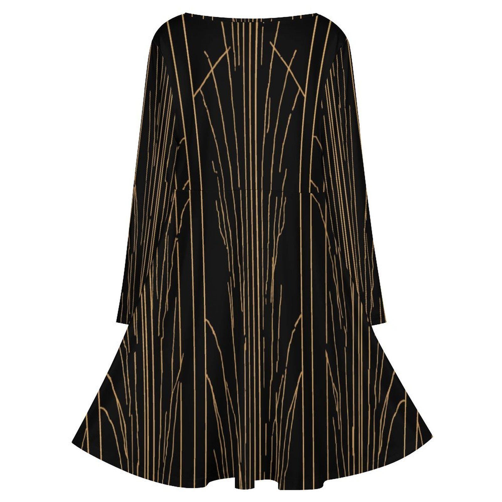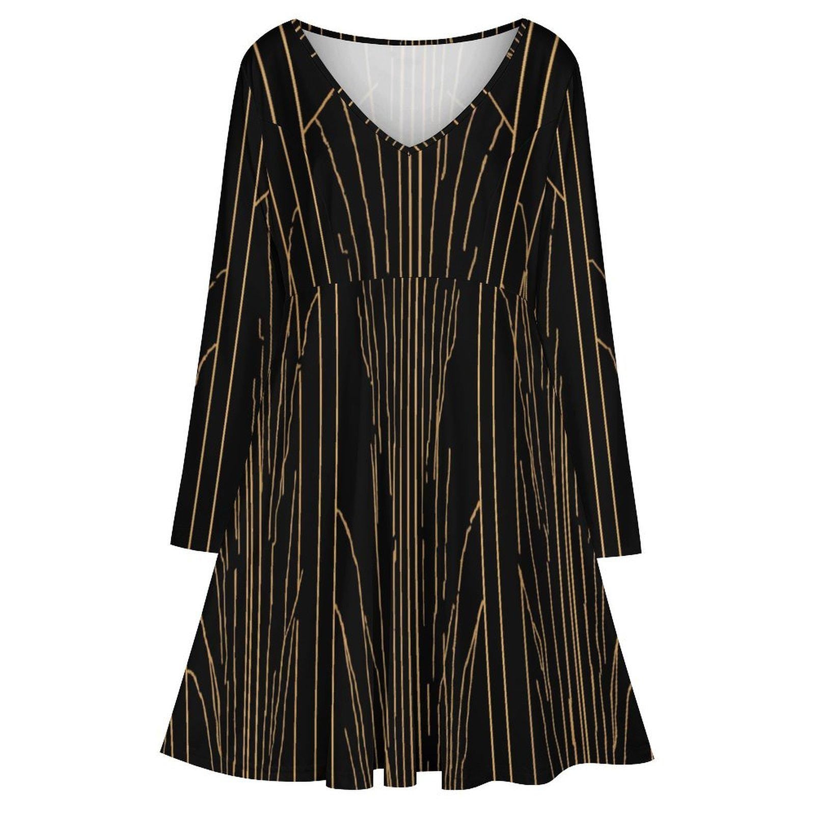 Elegante vestido negro y dorado con escote en V y manga larga, tallas S a 8XL | Estampado integral | Big Smiles