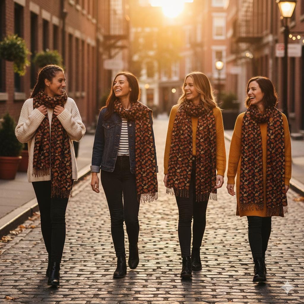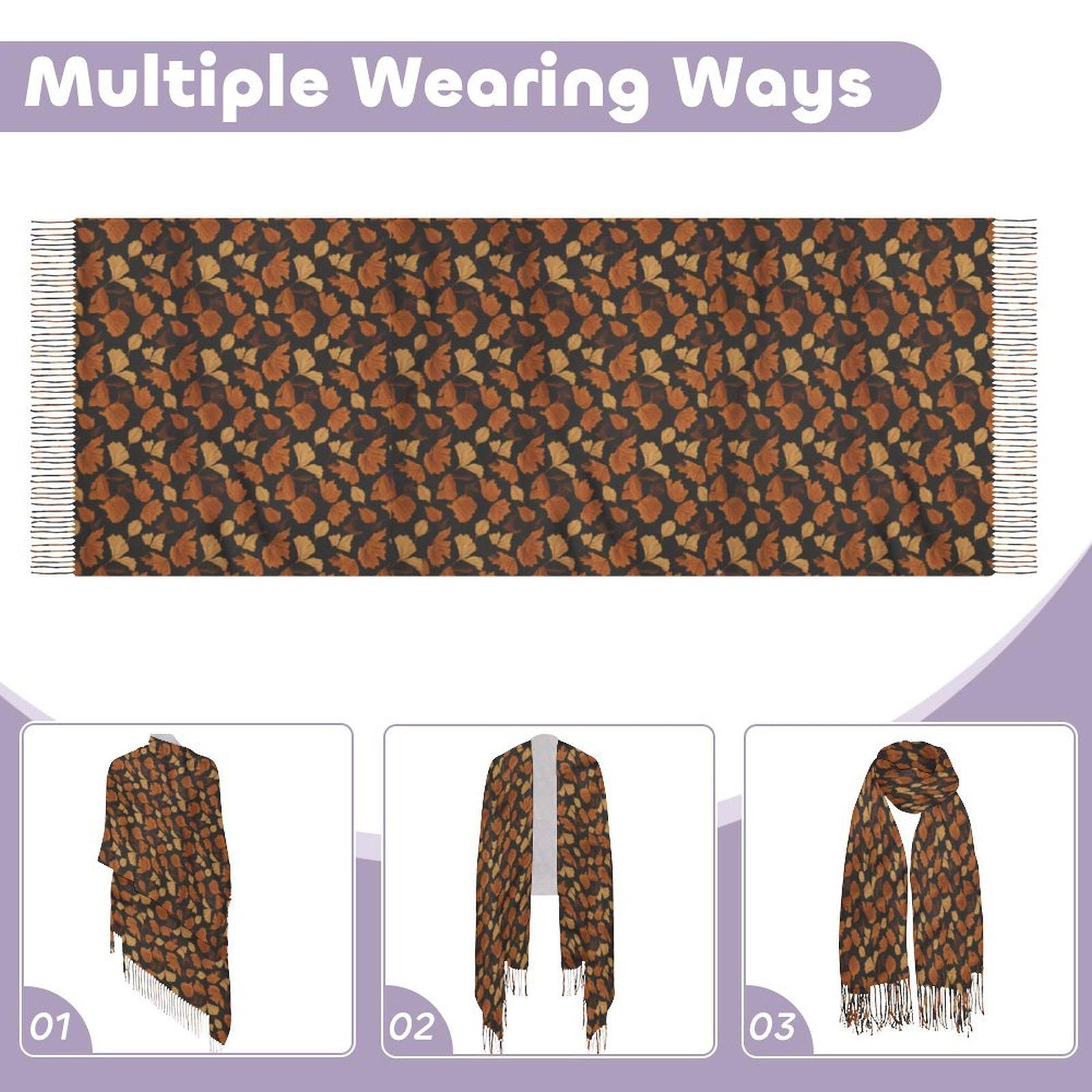 Écharpe à franges feuilles d’automne | Châle long doux effet cachemire 200x70 – Big Smiles