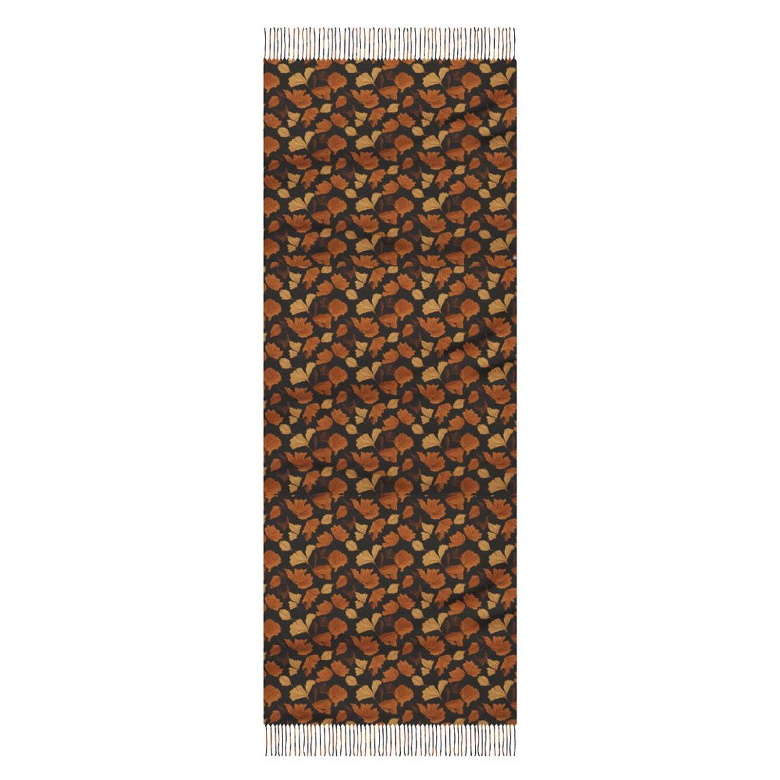 Le motif intégral de feuilles en teintes ambre, citrouille et miel garde son éclat au fil du temps.