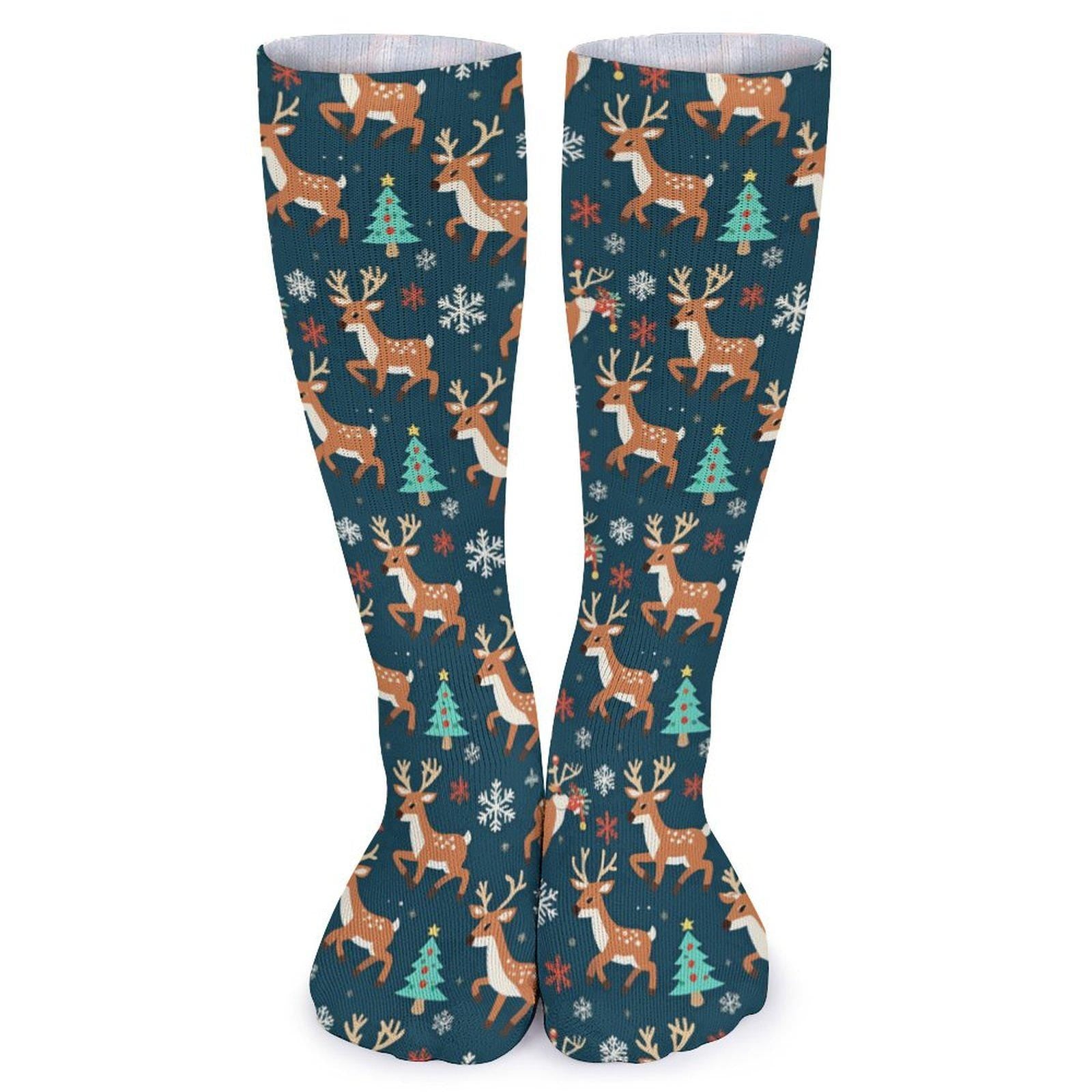 Chaussettes hautes de Noël rennes – unisexes, 40 cm, respirantes, maintien doux | Big Smiles inclusif