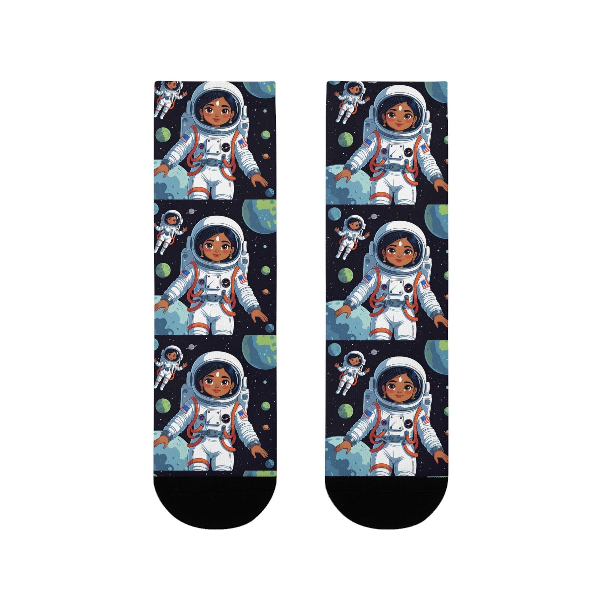 Chaussettes « Astronaut Girl » – crew sublimées, motif espace, cadeau space lovers