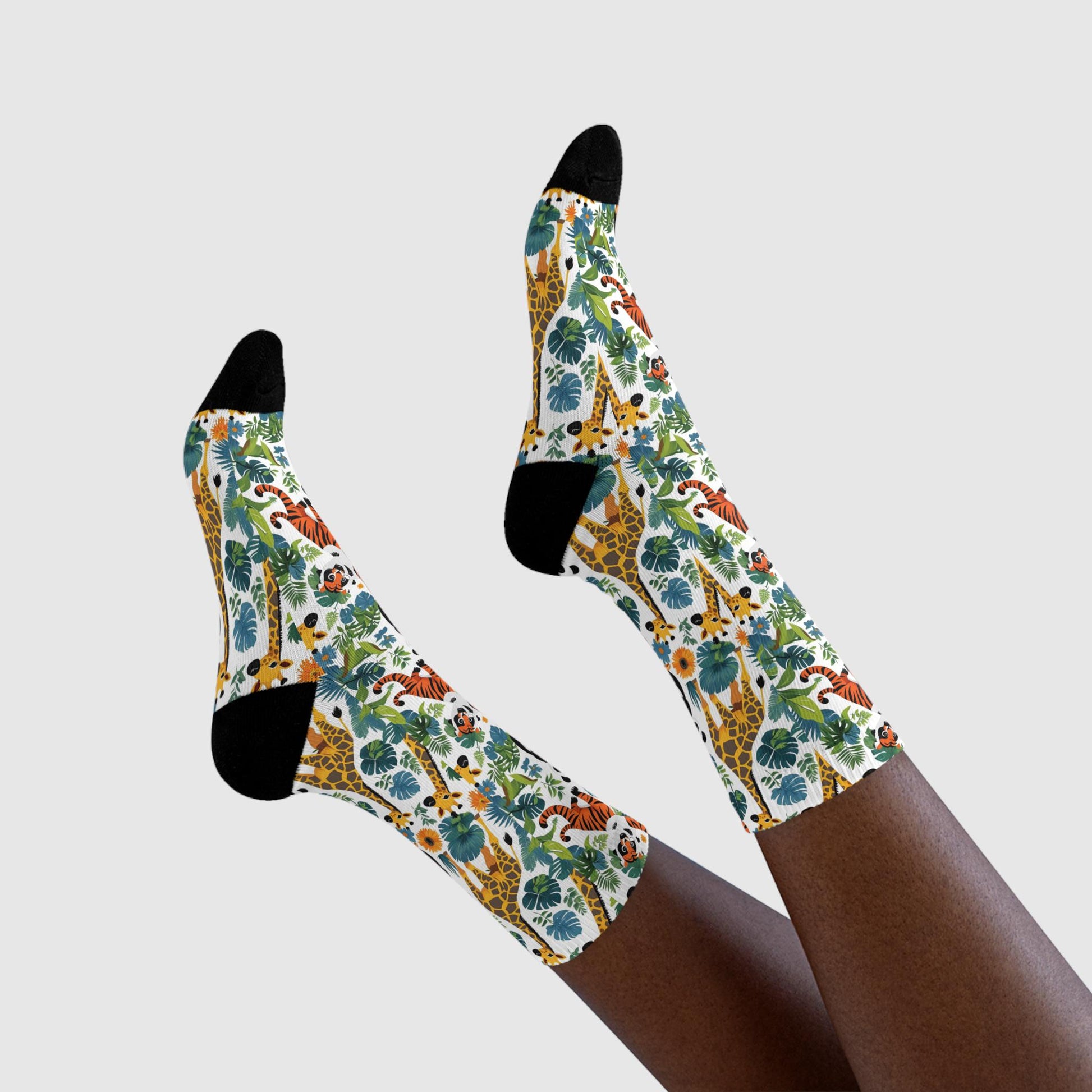 Chaussettes « Wildlife Adventure » – crew imprimées animaux, nature & jungle, confort cosy