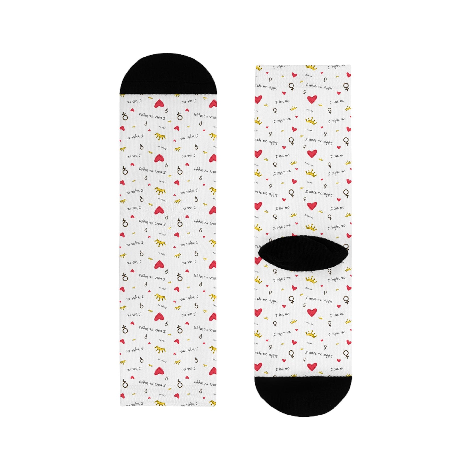 Un coup de peps à vos looks : chaussettes mi-mollet ultra douces, imprimé all-over cœurs & symboles, parfaites pour la Saint-Valentin et tous les jours.
