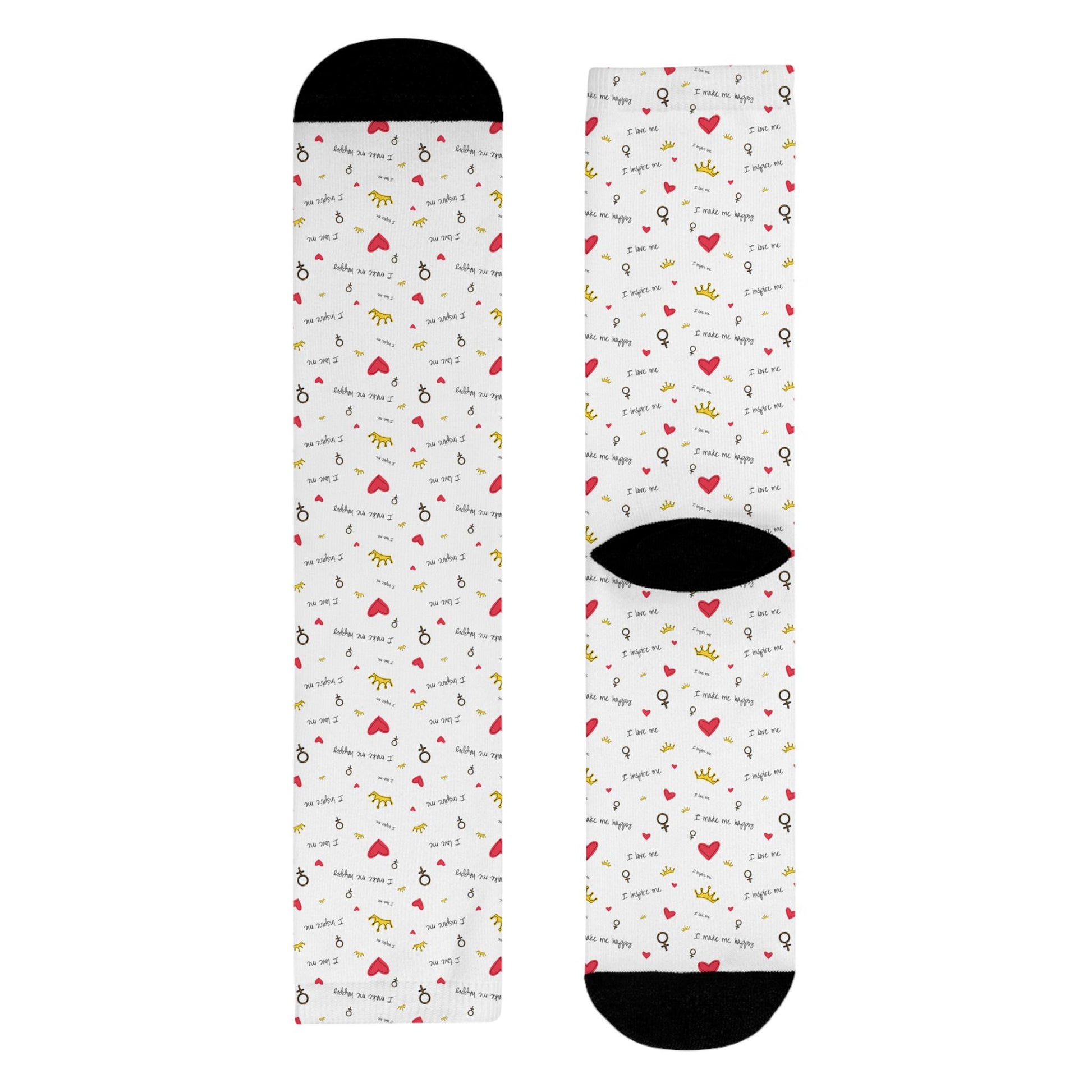 Glissez-les et sentez la bonne humeur monter. Nos « Happy Hearts » mêlent une maille souple qui épouse le pied et un motif ludique (cœurs, couronnes, symboles féminins) qui attire les sourires sans en faire trop. Elles montent juste comme il faut sur le mollet, restent bien en place grâce au tube côtelé et gardent leurs couleurs vives lavage après lavage. À la maison, au bureau casual ou en cadeau surprise, elles ajoutent ce détail fun qui fait parler — idéal pour la Saint-Valentin, un anniversaire ou simplement pour se faire plaisir.