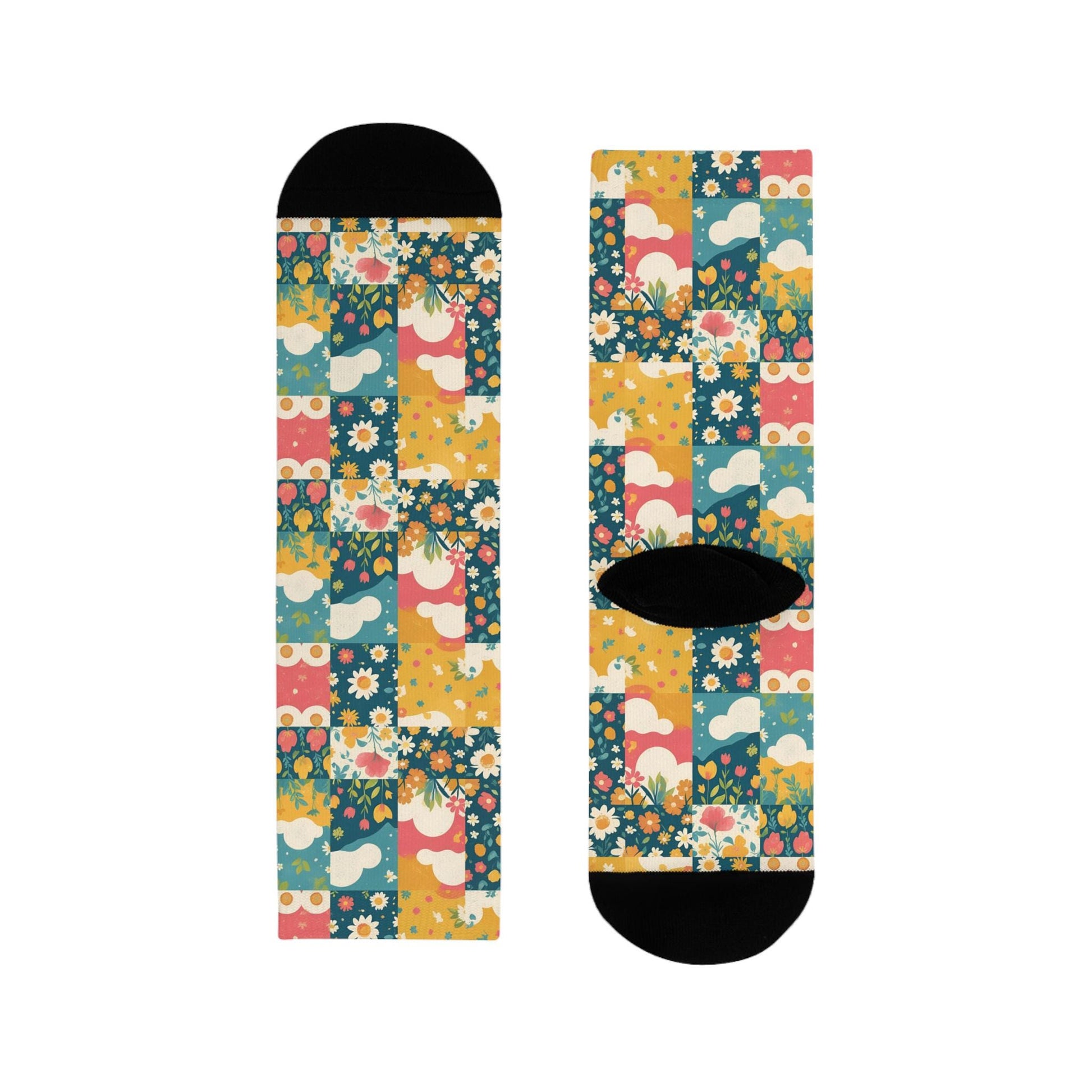 Chaussettes « Floral Patchwork » – crew sublimées, motif fleuri rétro, confort cosy