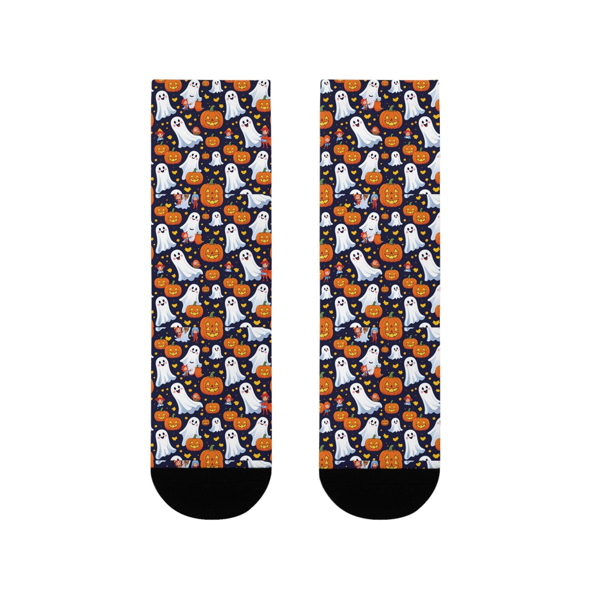 Chaussettes « Spooky Ghosts » – crew sublimées Halloween, motif fantômes & citrouilles, confort cosy
