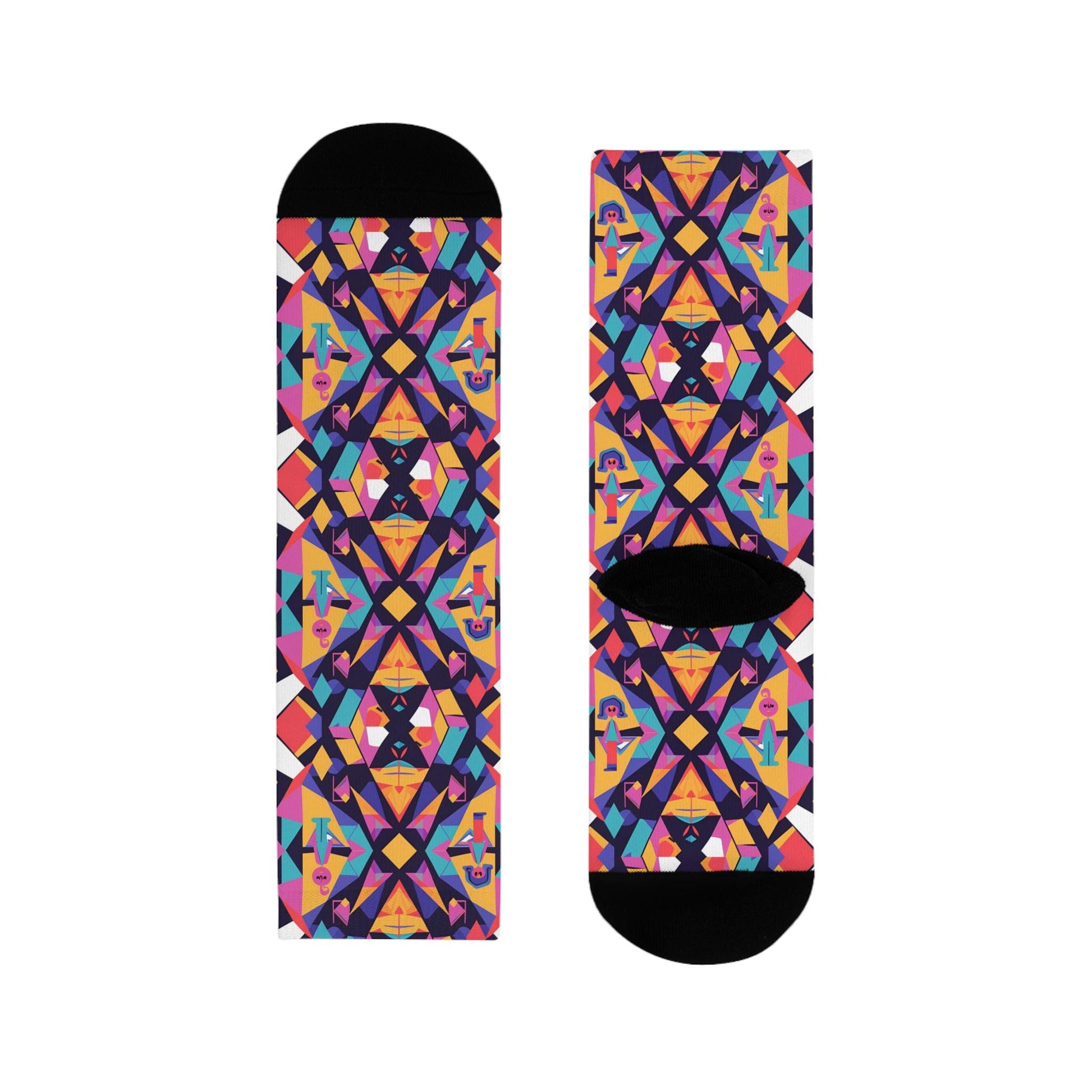 Chaussettes « Geo Pop » – crew sublimées, motif géométrique coloré, confort cosy