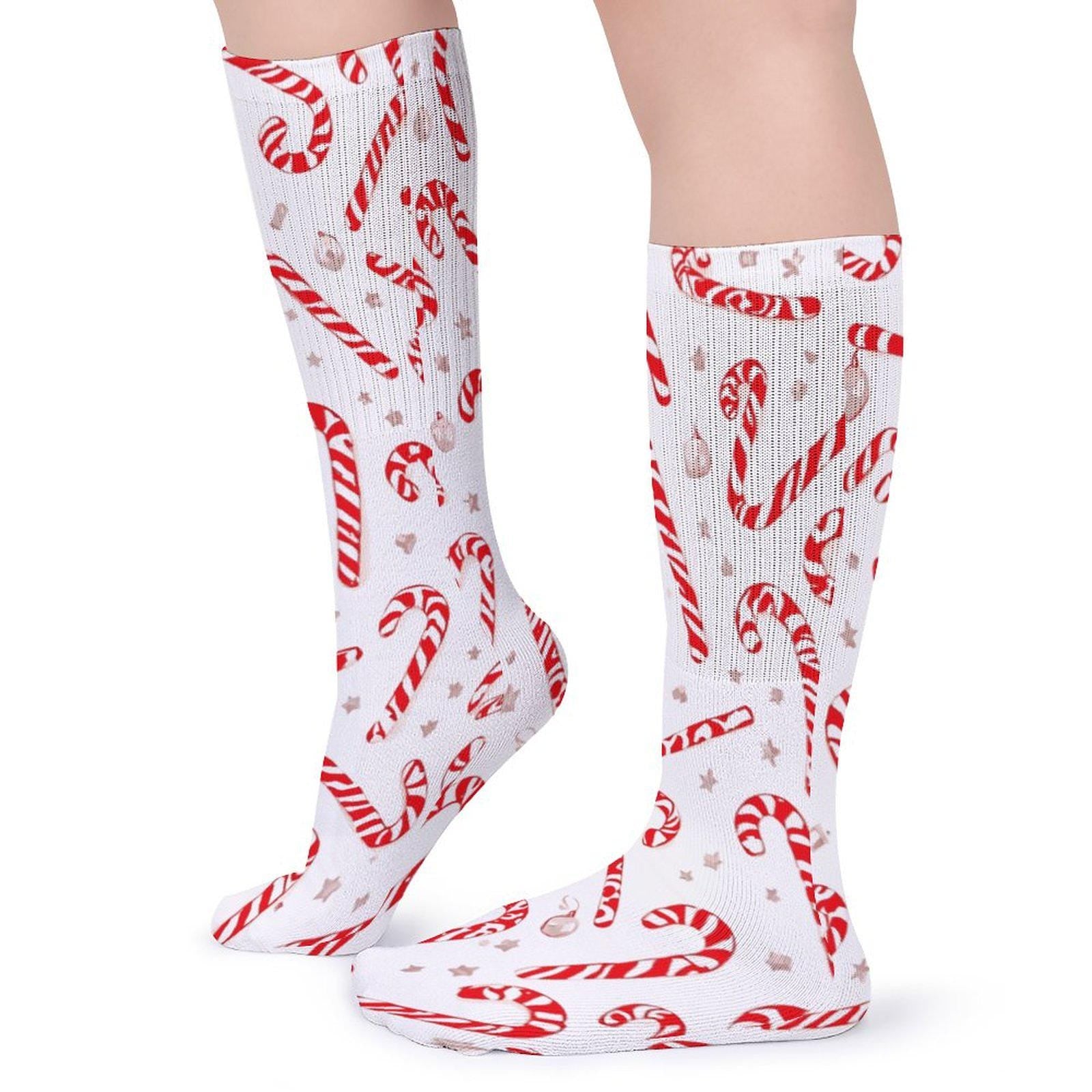 Mettez la fête à vos pieds ! Chaussettes montantes avec imprimé intégral cannes de sucre, douces, respirantes et à forte élasticité pour un maintien confortable non compressif.