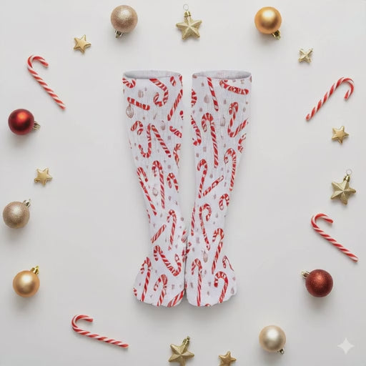 Chaussettes montantes Noël | Imprimé cannes de sucre | Unisexes, respirantes & extensibles | Mode inclusive Big Smiles