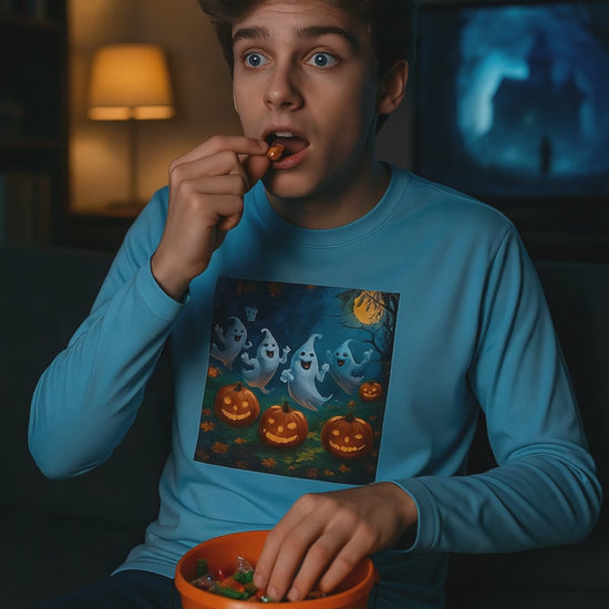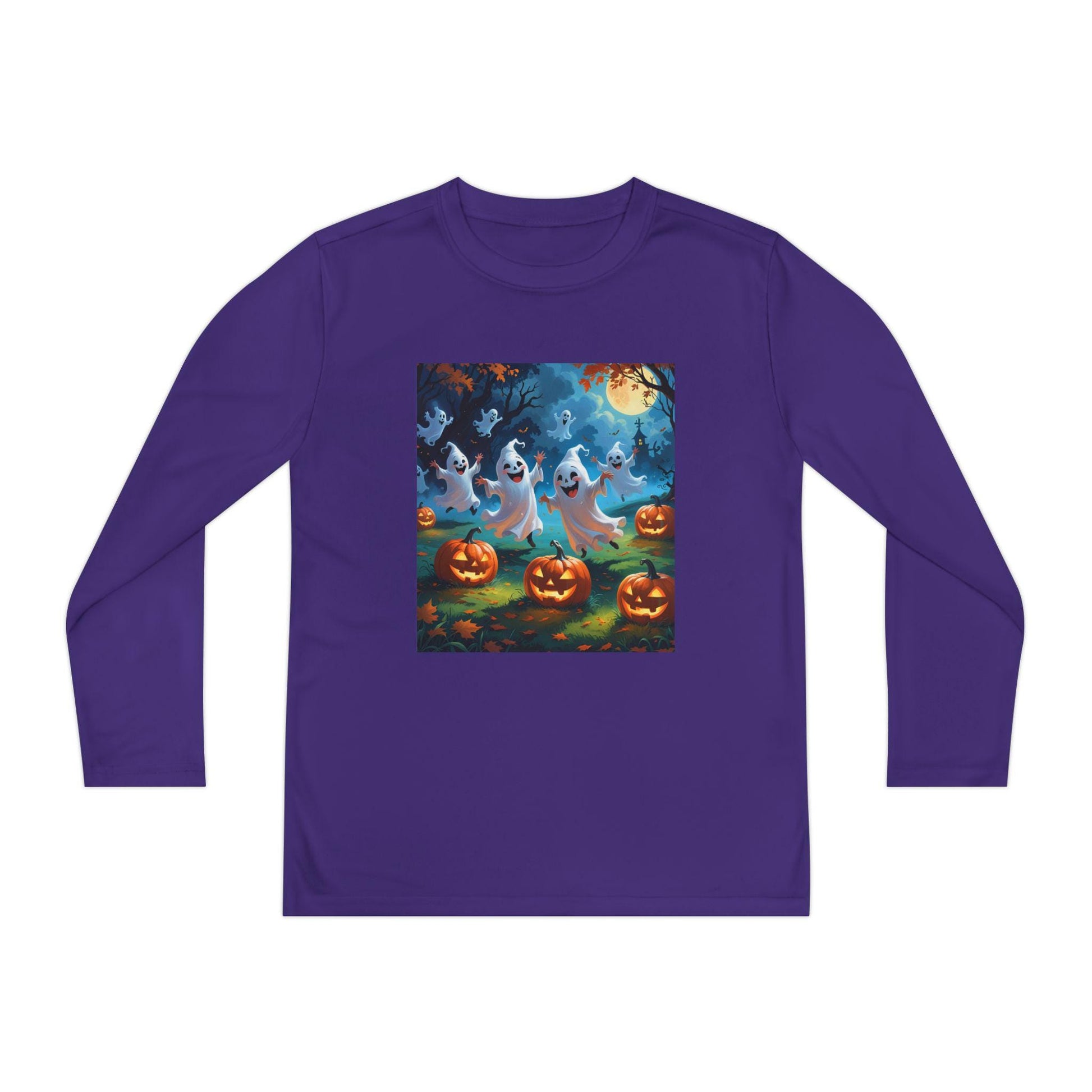 T-shirt pour les jeunes Halloween manches longues fantômes & citrouilles — respirant