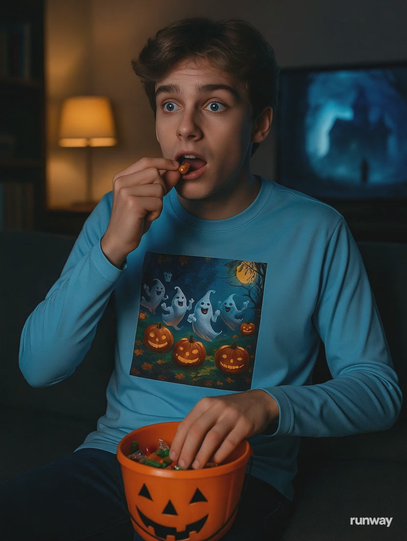 Ce t-shirt performance manches longues pour enfants donne vie à la saison : fantômes malicieux, citrouilles lumineuses et couleurs d’automne. Léger et évacuant l’humidité, il reste confortable du défilé d’école aux tournées de trick or treat.