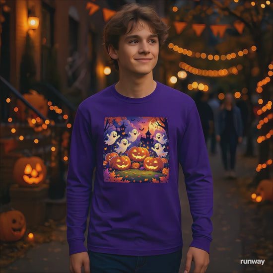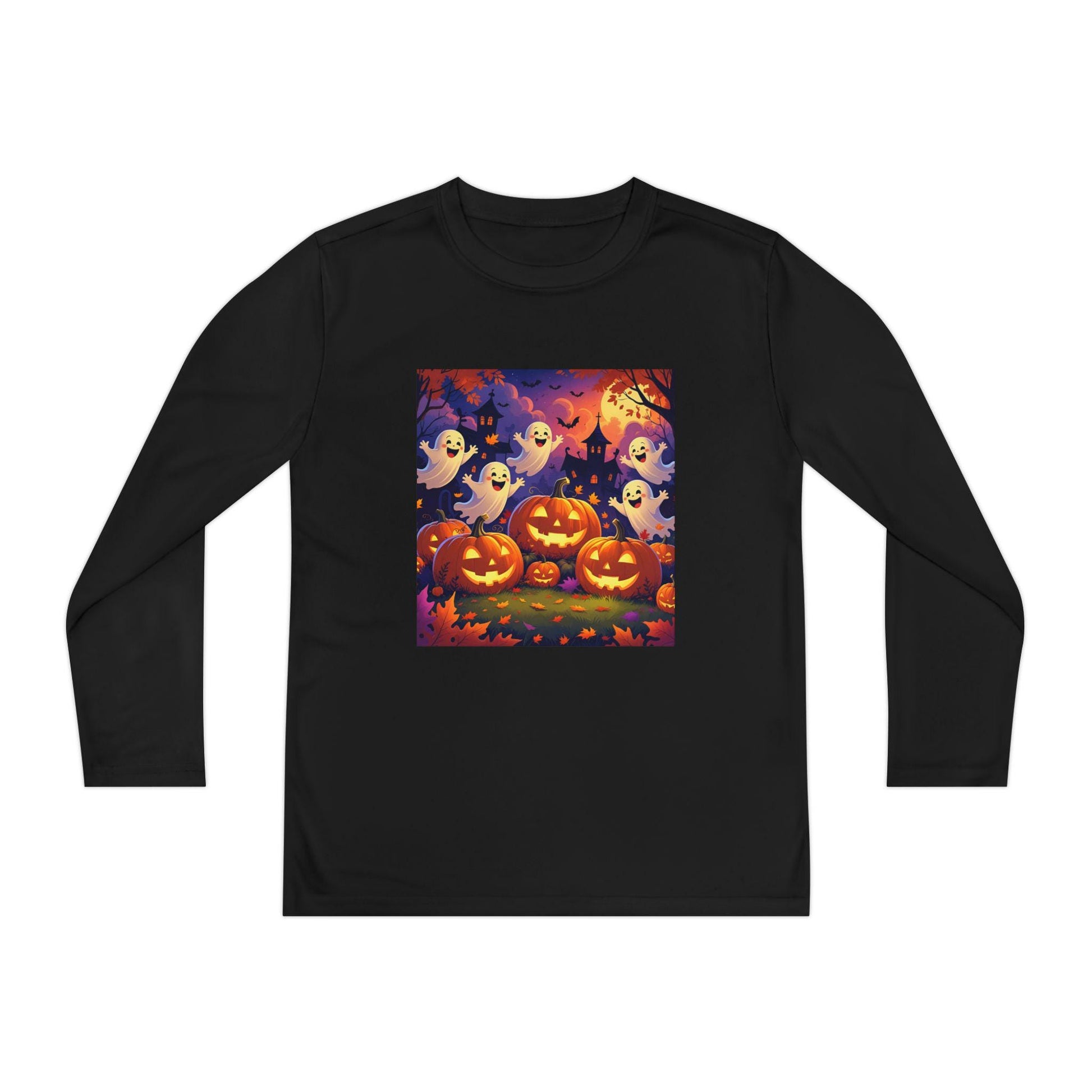 T-shirt pour les jeunes Halloween manches longues performance, fantômes & citrouilles