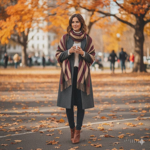 📖 Inspirée par les soirées fraîches et les escapades citadines, cette écharpe façon cachemire enveloppe le cou d’une douceur luxueuse sans lourdeur. Son imprimé diagonal bordeaux, brun et beige apporte un relief graphique qui sublime manteaux, vestes et denim. Grâce à l’impression intégrale par sublimation, les couleurs restent intenses au fil des sorties, des voyages et des fêtes. Les franges classiques signent une allure intemporelle et élégante. Unisexe et taille unique, elle s’adapte à tous les styles et silhouettes — parce que la mode est plus belle quand es inclusiva.