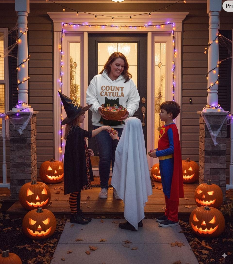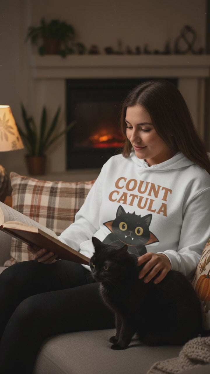 Le mélange parfait entre mignon et effrayant ! Ce sweat à capuche avec un chat vampire apporte confort et originalité à votre saison d’Halloween. Que vous soyez amoureux des chats, fan de looks gothiques ou amateur de vêtements uniques, Count Catula est là pour illuminer vos journées.