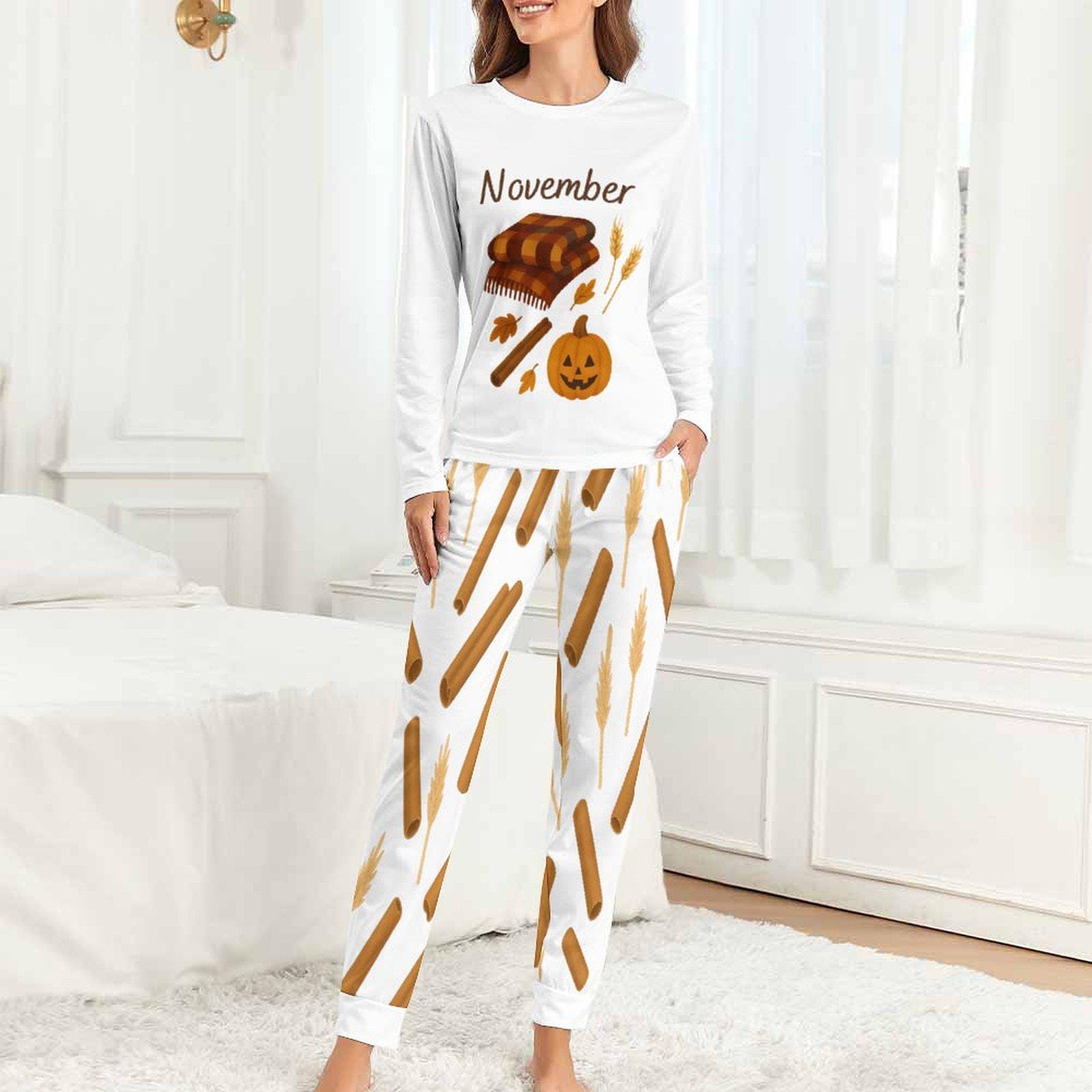 tailles XS - 6XL Pyjama femme novembre automne, ensemble deux pièces, pyjama cosy avec cannelle et citrouille,