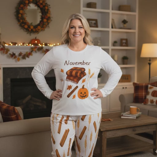 Profitez du calme de l’automne avec ce pyjama de novembre pour femme, deux pièces.