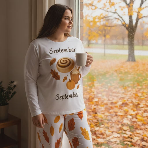 Célébrez le charme de l’automne avec ce pyjama de septembre pour femme, deux pièces.