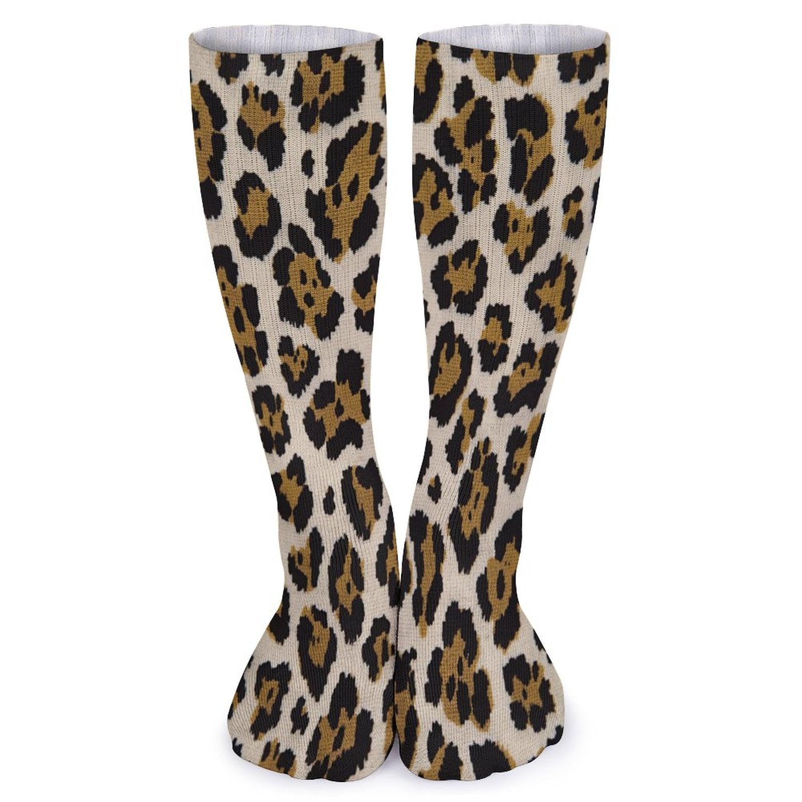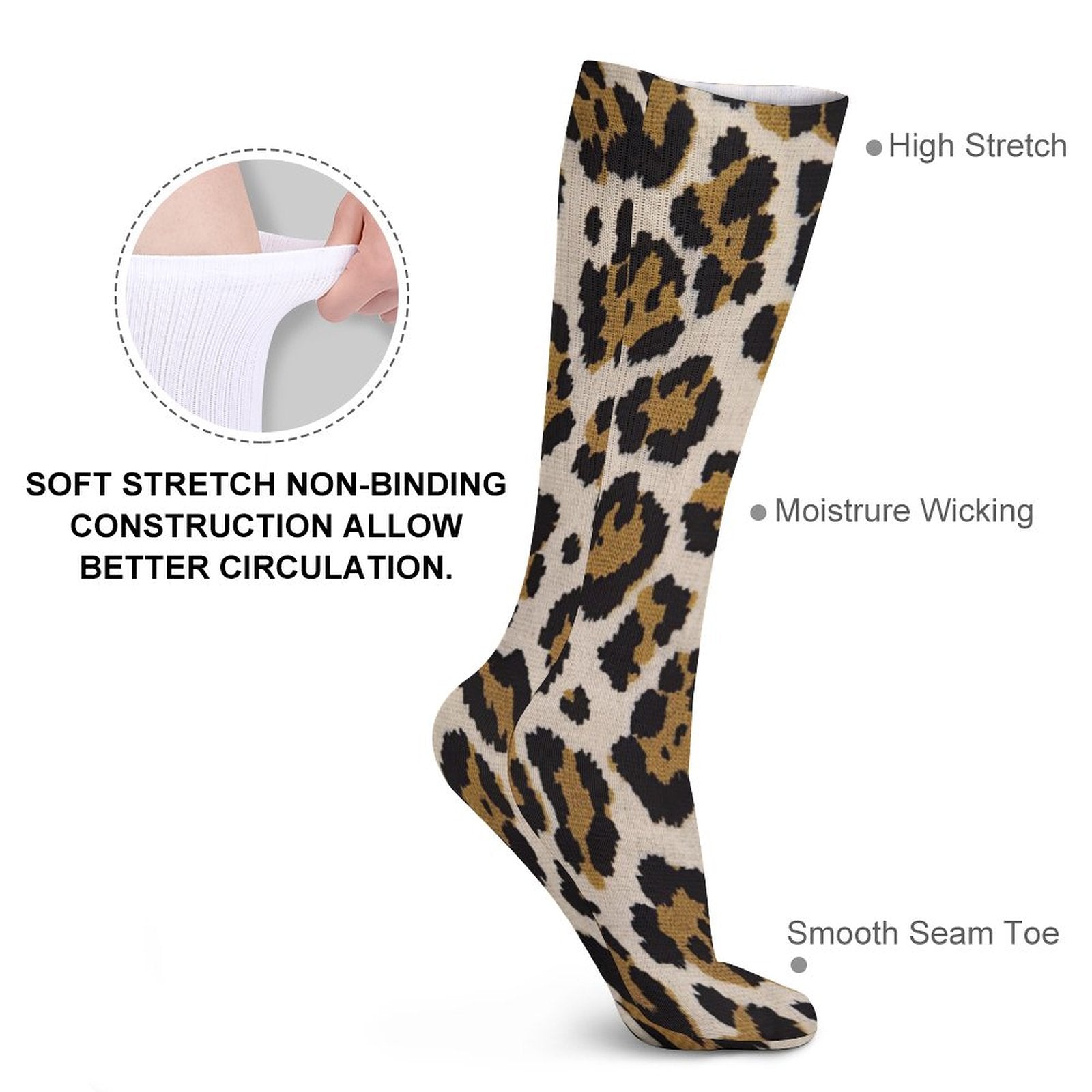 Chaussettes montantes léopard beige – respirantes, anti-glisse & confort mollets – impression all-over | Big Smiles