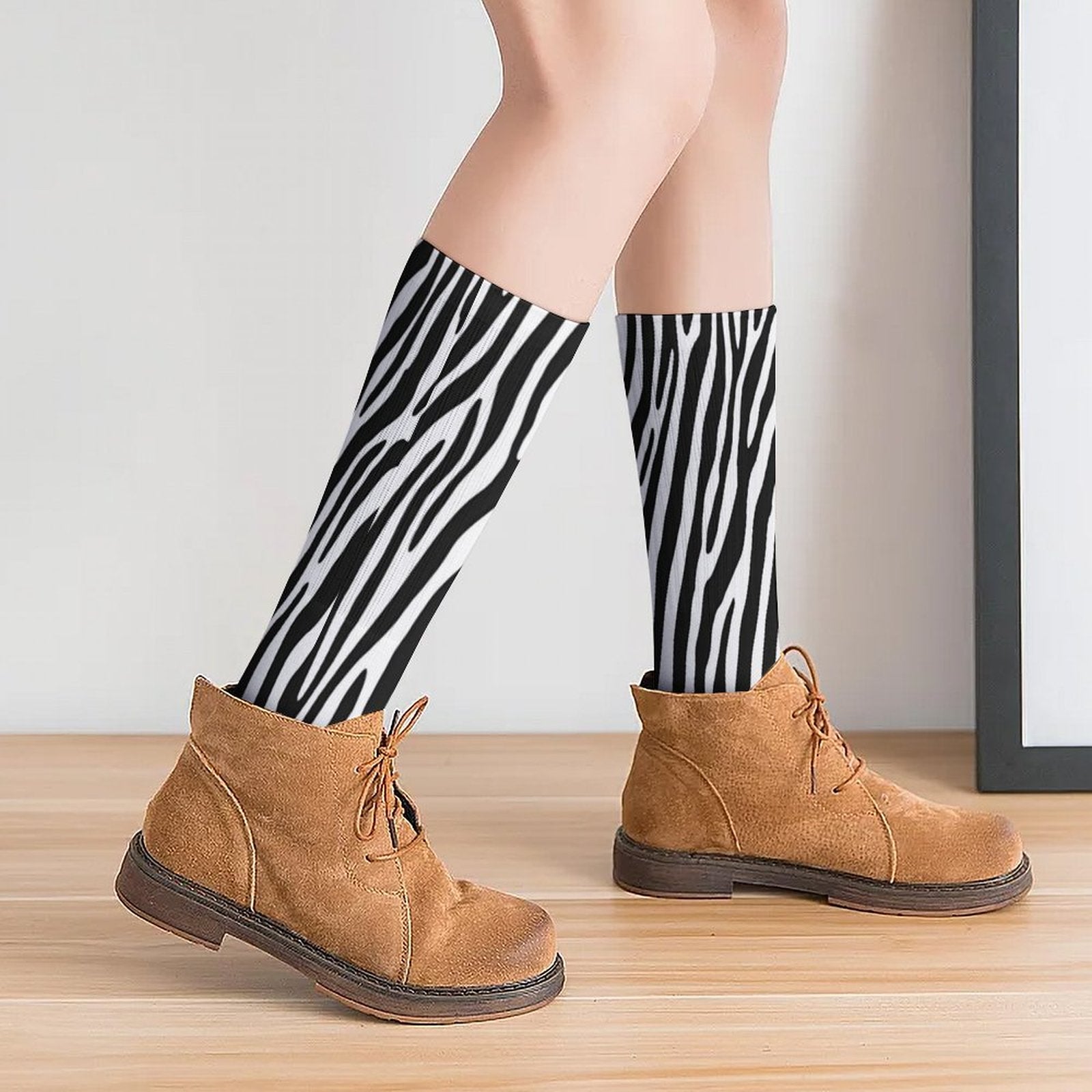 Chaussettes montantes motif zèbre – respirantes & confort mollets – impression all-over | Big Smiles